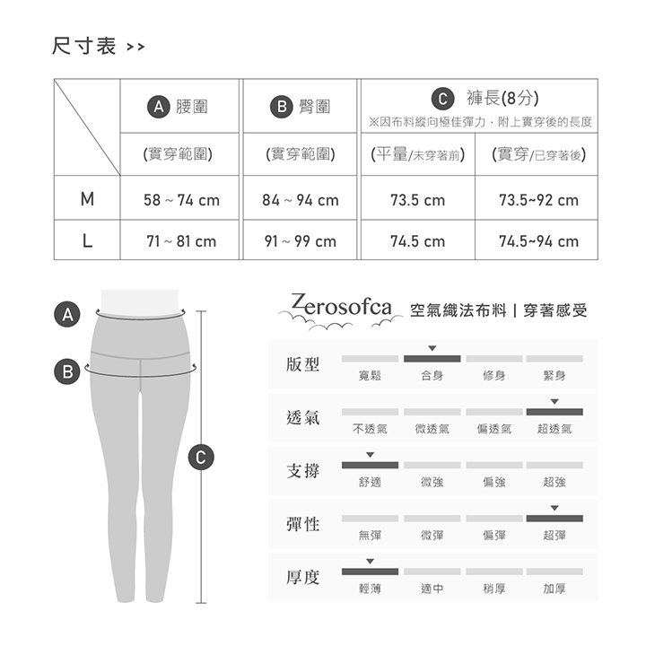Zerosofca超輕量女裝運動長褲 ***為亞洲人身型設計,比市面上的褲款有機會偏細,如想穿著比較舒適,可選大一個碼 Twist小麻花黃 ▮純粹【輕、透、柔】 ▮每件不到150g 如風吹拂般的輕盈 ▮瑜珈、皮拉提斯、Zumba、日常休閒 ✔Zerosofca無痕內衣高級布料 ✔特殊空氣織法 輕透系必備 ✔極細尼龍成分 極緻滑順手感 ✔超彈力親膚 多向伸展包覆雙腿 ✔經編堅固織法布料 不易變形 ▮中腰8分褲 ▮ M、L